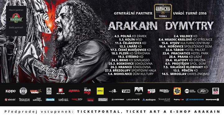 SPARK TV: ARAKAIN - interview about new album "Arakadabra" pt. IIKapela minulý týden úspěšně odstartovala v Polné a v Kolíně turné, na kterém ji, stejně jako v roce 2014, doprovází maskovaná smečka Dymytry. Pokud se chystáte na jednu z následujících 22 zastávek, tak s nákupem lístků moc neotálejte. Například plzeňský koncert je už beznadějně vyprodaný.