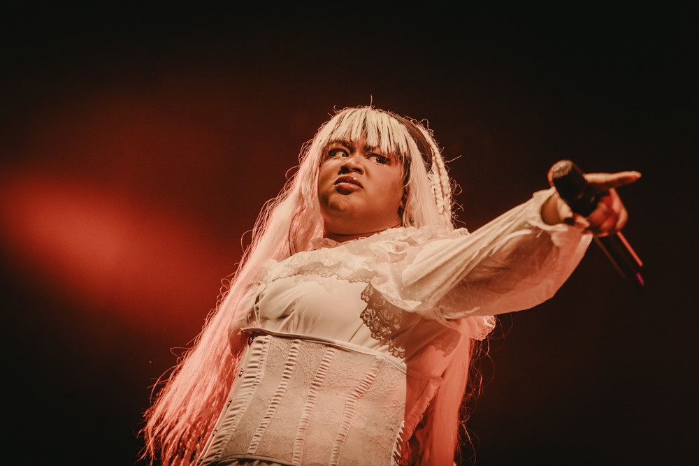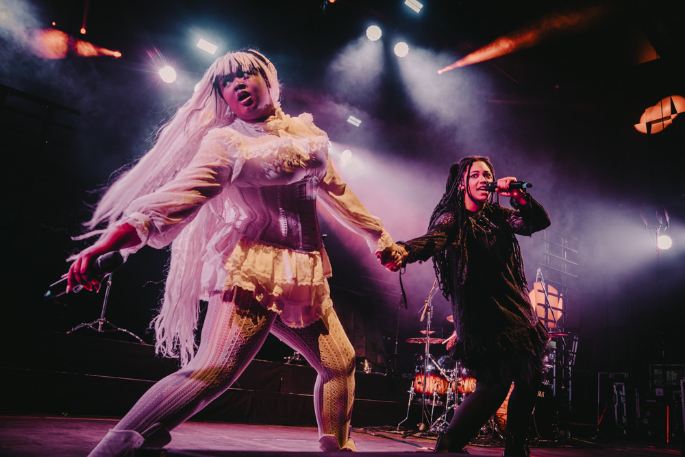 Večer odpálilo britské duo ALT BLK ERA, sestry Nyrobi a Chaya z Nottinghamu. A teď záleželo, odkud jste jejich show pozorovali - vpředu lidi skákali a křičeli nadšením, ale my vzadu u baru jsme si zacpávali uši a přemýšleli, proč jsme si sakra nevzali špunty. Vokály byly tak přestřelený, že hrozila perforace bubínků, a světla tak ostrý, že jsem reálně litovala, že jsem si nevzala sluneční brýle. Energie fajn, mix techniky... diskutabilní.