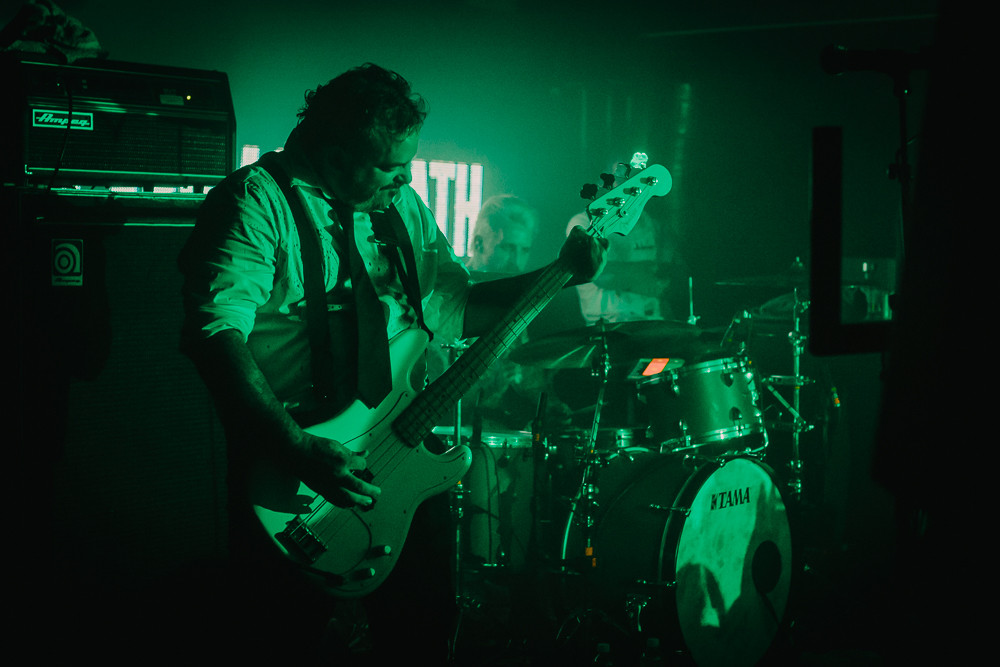 Což mě teda přivádí k poslední myšlence. Klub sice změnil název i provozovatele, záchody prošly renovací (nebo jen nainstalovali nový světlo? hard to say) a ze stropu zmizely neonový čáry, který mě v tomhle prostoru vždycky bavily, ale to je asi tak všechno. Ba naopak, zatím na mě tahle změna vůbec nezapůsobila a řadím ji spíš mezi ty špatný pražský venues. Býval to Storm Club (nebo pro pamětníky Matrix), známý hlavně díky DnB akcím, ale pár metalků se tam už taky ukázalo. Přes velký množství sloupů člověk mizerně vidí, zvukař zatarasil prostředek prostoru tak, že šel obejít jen zprava, takže se lidi hromadili a nemohli proudit z obou stran. Kvůli nízkému stropu a množství světel a reflektorů pak (normálně vzrostlý) lidi od baru vidí jen hlavy členů kapely. A samotný bar - škoda mluvit. Na dvě pípy se člověk může maximálně tak smutně koukat, zatímco dostává do ruky třetinkovýho lahváče Heinekenu nebo Corony, protože točený pivo se tu očividně už nevede. Ach jo.