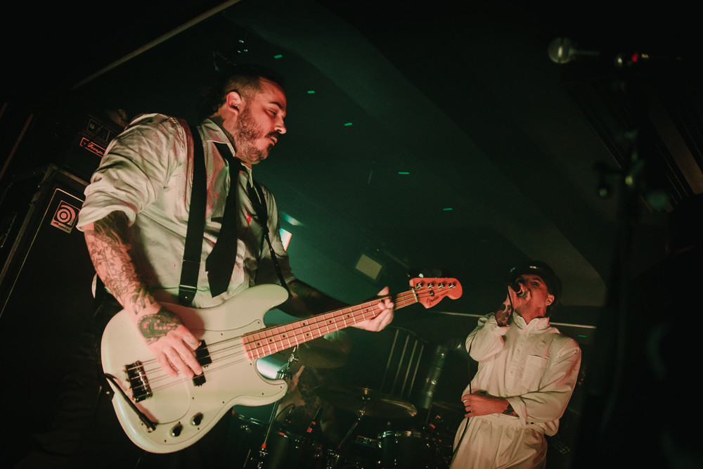 Pražský koncert vyšel akorát na Halloween, což se dokonale hodilo. A protože jsou kluci z New Yorku, dorazila kapela v kostýmech a zvolila téma Mechanického pomeranče (Clockwork Orange). Frontman Drew York v bílém overalu, s buřinkou a jedním namalovaným okem vypadal jako Alex z filmu - v kombinaci s červenými světly působil skoro až děsivě. Když do mikrofonu zařval "happy halloween motherfuckers!", bylo jasný, že tohle nebude obyčejnej večer.