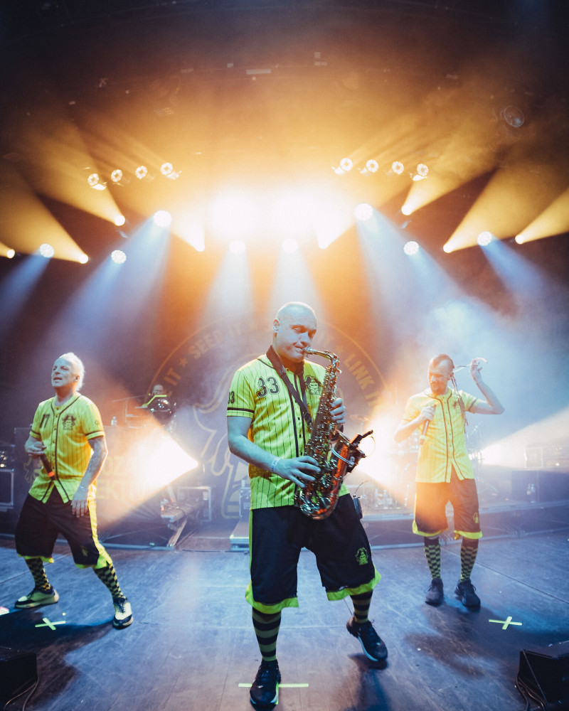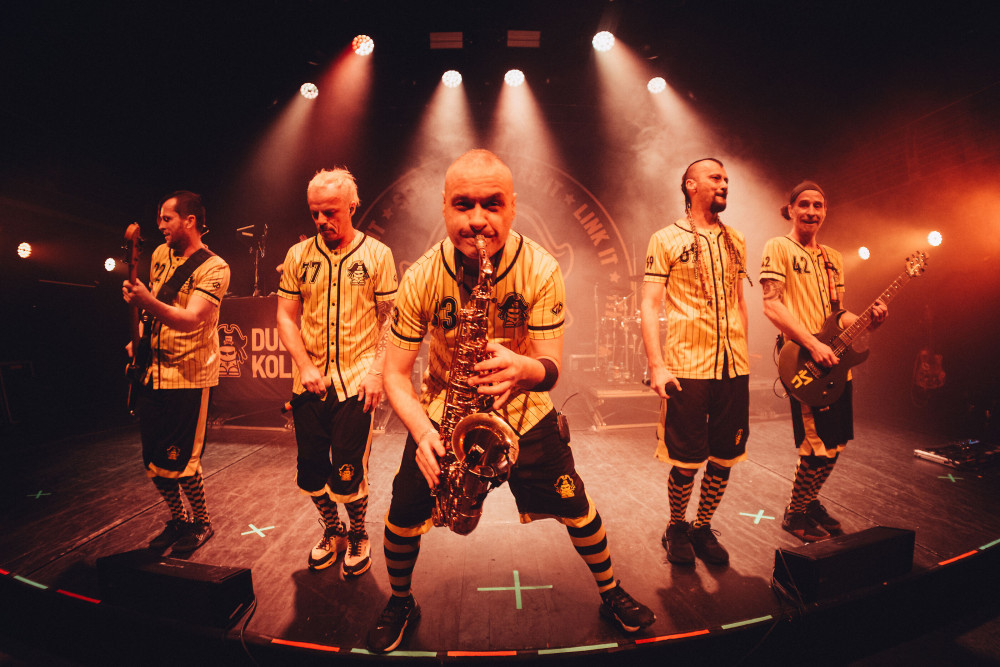 Kdo neví, vo co go, Dubioza je bosenská sedmičlenná kapela, která míchá reggae, dub a rock a často to celý staví na politicky zabarvených textech. Jsou známí i vizuálem: žlutá a černá, vlastní merch ve stylu fotbalových dresů. V praxi to vypadalo tak, že celý pódium obsadili "přerostlí čmeláci", kteří bláznivě poletovali mezi nástroji, nebo prostě jen dělali bordel. Jinými slovy: prostě pořádná balkánská party.