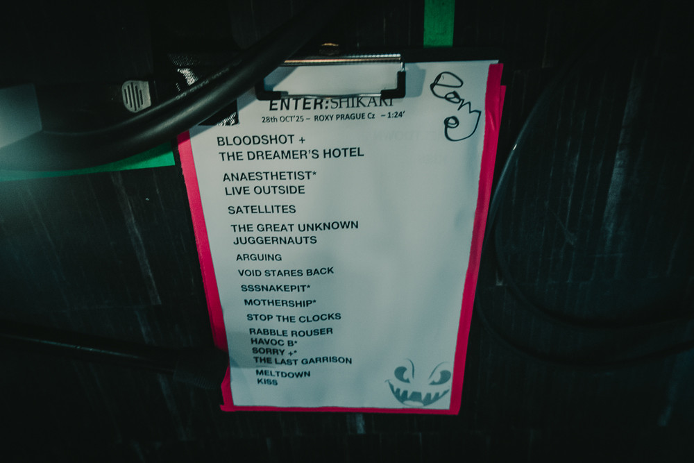 Setlist potěšil - byl hezky vybalancovaný napříč diskografií a kapela oprášila i skladby, které běžně moc nehrají. "Quickfire Round" sice chybělo, ale naopak nechyběly jejich proslulé elektro-edity vlastních skladeb, které proměnily části setu v DnB/dubstep rave. Frontman Rou se samozřejmě neudržel na zemi a během "The Void Stares Back" vyšplhal na reflektory tři metry nad kapelu, odkud to celé odzpíval jak z nějakýho neonovýho trůnu, basák Chris zase zamířil dolů mezi lidi během "Sssnakepit" a rozvířil dav fanoušků v circle pitu kolem sebe, jak to rád často dělá.