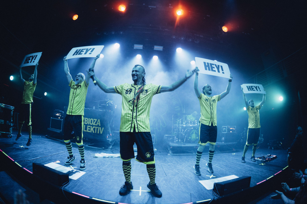 Kdo neví, vo co go, Dubioza je bosenská sedmičlenná kapela, která míchá reggae, dub a rock a často to celý staví na politicky zabarvených textech. Jsou známí i vizuálem: žlutá a černá, vlastní merch ve stylu fotbalových dresů. V praxi to vypadalo tak, že celý pódium obsadili "přerostlí čmeláci", kteří bláznivě poletovali mezi nástroji, nebo prostě jen dělali bordel. Jinými slovy: prostě pořádná balkánská party.