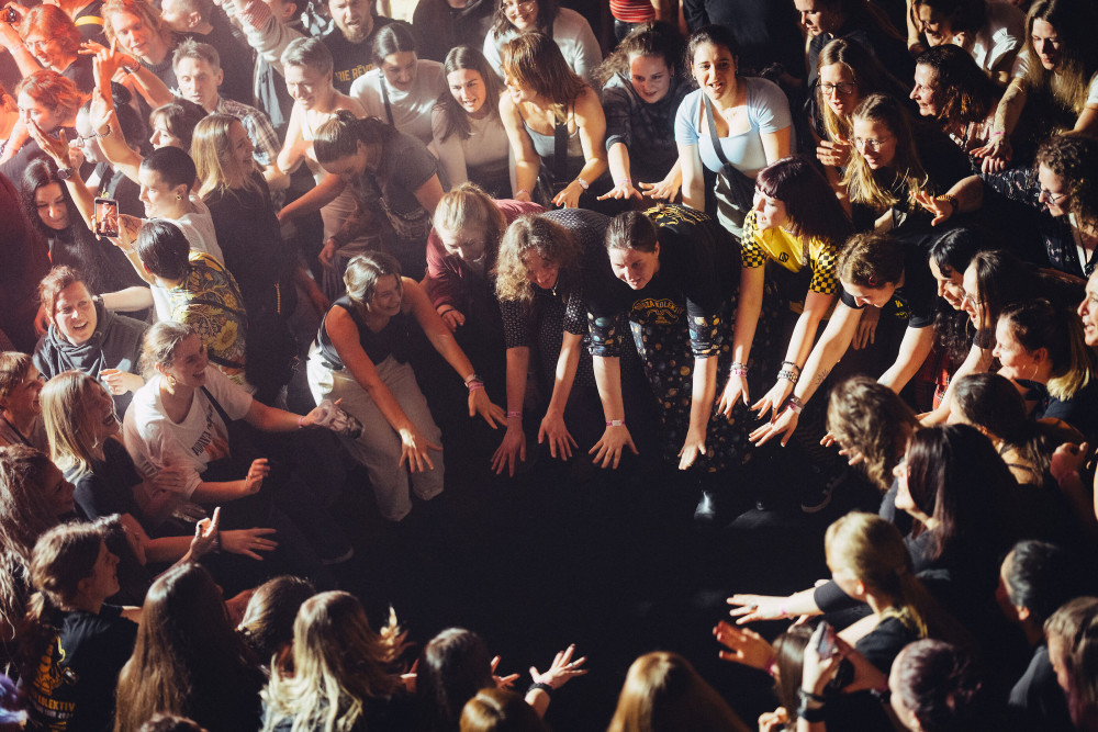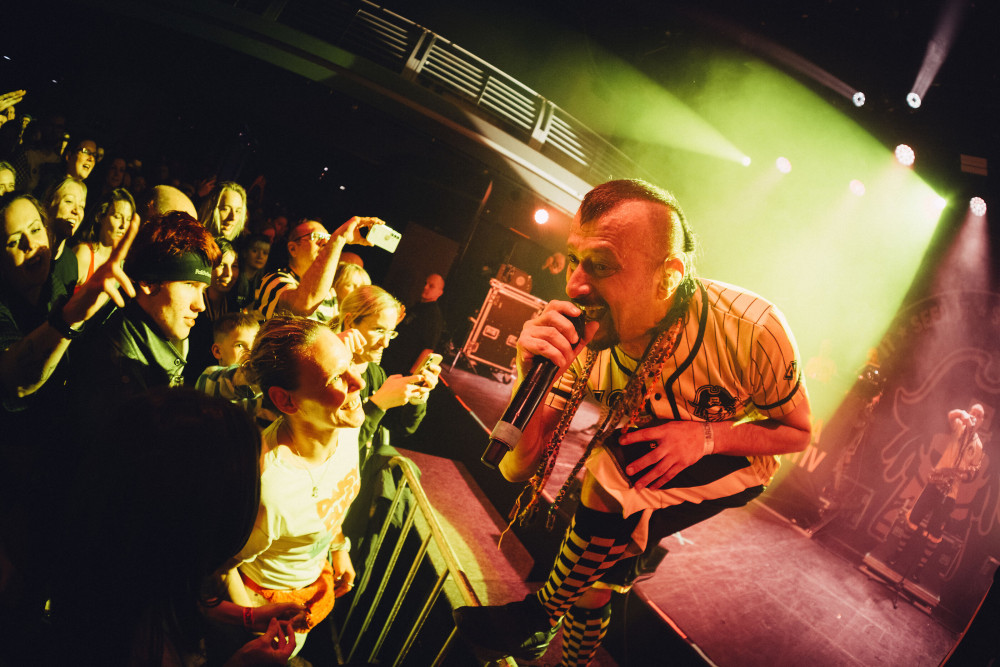 Dostat se do sálu byl taky slušnej hardcore - hlava na hlavě a vydejcháno prakticky od prvních minut. Když ale Dubioza odpálila set nejznámější skladbou "USA", publikum okamžitě přešlo do zběsilého zpěvu, občas spíš řevu, otevřel se moshpit a už to jelo - a nezastavilo se to přesně dvě hodiny, protože takhle dlouhou party tihle "Balkan Boys" připravili. Zazněly hity jako "Free.mp3 (The Pirate Bay Song)", "Kažu" a "Himna generacije", při který se ke kapele na podiový tanečky přidal i Banana man a random dítě z publika, ale padla i řada novějších věcí, a vzduch byl nabitý energií. Na "Boom" kapela vyhecovala všechny dámy v sále do Ladies moshpitu, aby to ale bylo vyvážený, přišla později řada i na pány a jejich vlastní, gendrově nevyvážený pit.